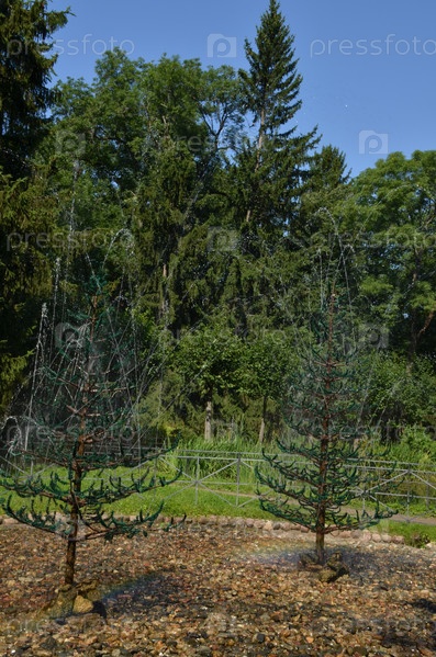 Фонтан-шутиха Елочки в Нижнем парке Государственного музея-заповедника Петергоф в Санкт-Петербурге в летний день