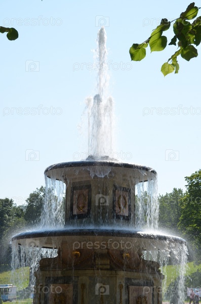 Римские фонтаны в Нижнем парке Государственного музея-заповедника Петергоф в Санкт-Петербурге в ясный летний день
