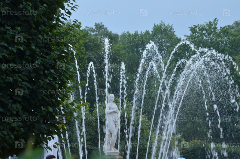 Фонтан Ева на Марлинской аллее в Нижнем парке Государственного музея-заповедника Петергоф в Санкт-Петербурге в ясный летний день