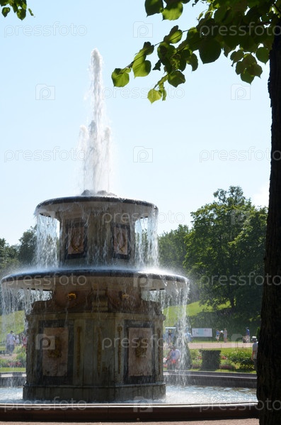 Римские фонтаны в Нижнем парке Государственного музея-заповедника Петергоф в Санкт-Петербурге в ясный летний день