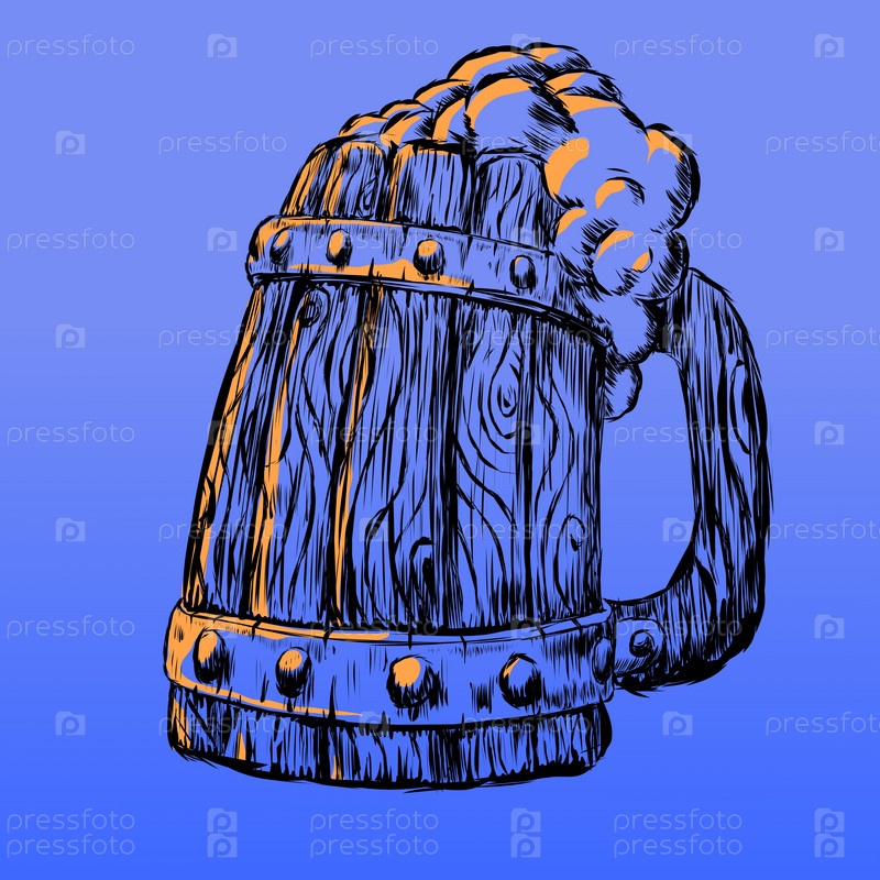 Монохромная кружка для пива Римунок, расписанная мазками на синем фоне