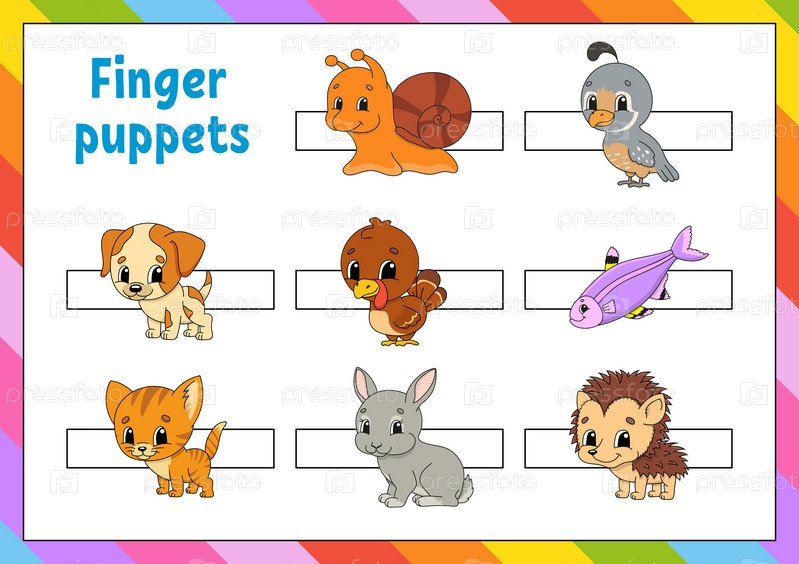 Пальчиковые куклы. Занятия для детей. Милые персонажи мультфильмов. Векторная иллюстрация