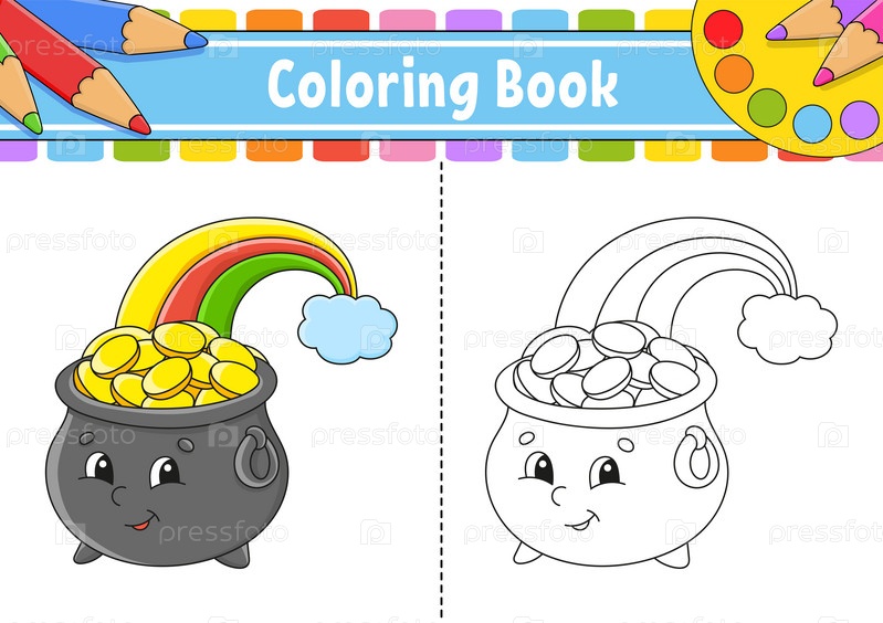 Раскраска для детей. Персонаж мультфильма. Векторная иллюстрация. Черный контурный силуэт. Изолирован на белом фоне. День Святого Патрика