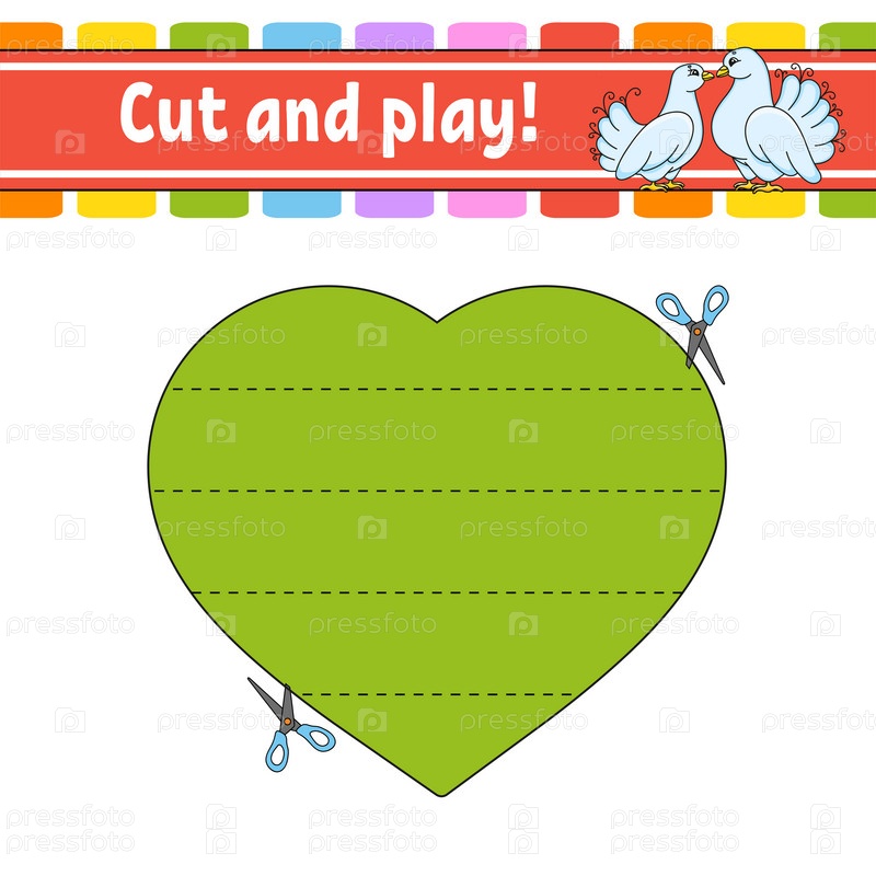 Разрезай и играй. Логическая головоломка для детей. Образовательный развивающий рабочий лист. Обучающая игра. Страница с заданиями. Практика вырезания для дошкольников. Векторная иллюстрация