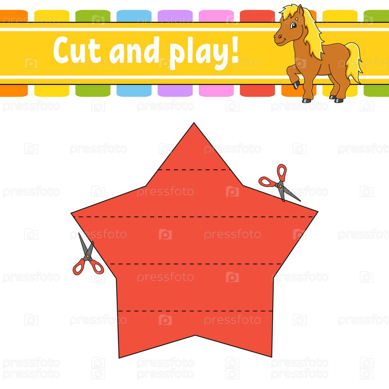 Разрезай и играй. Логическая головоломка для детей. Образовательный развивающий рабочий лист. Обучающая игра. Страница с заданиями. Практика вырезания для дошкольников. Векторная иллюстрация
