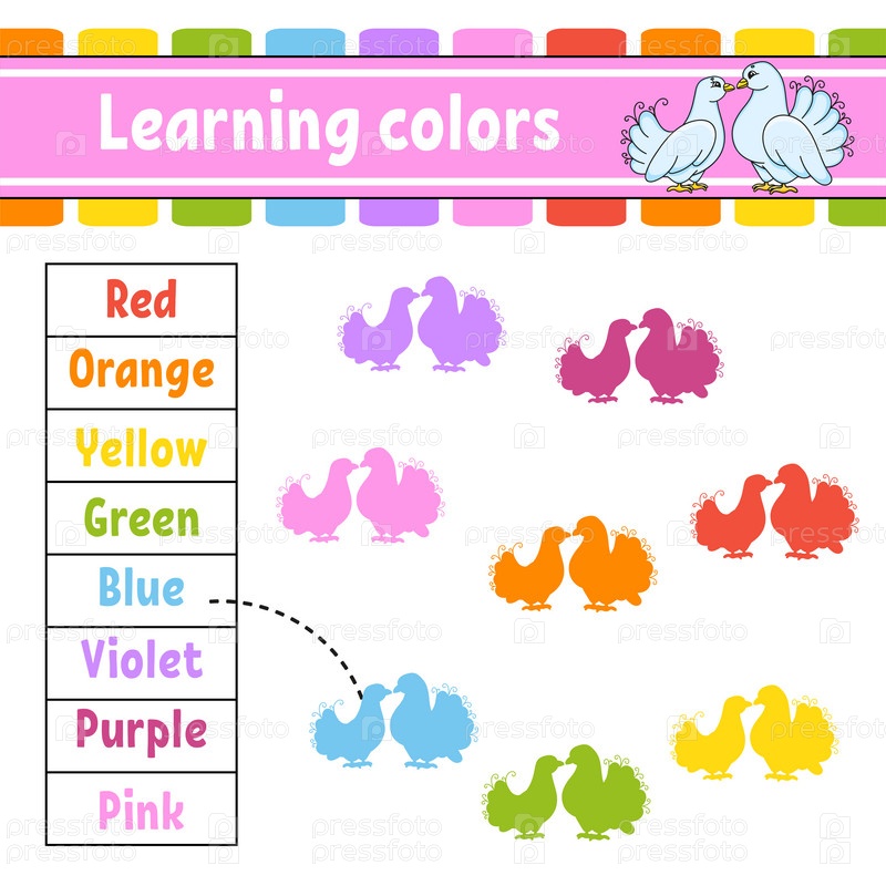 Изучаем цвета. Образовательный развивающий рабочий лист. Страница с заданиями с картинками. Игра для детей. Забавный персонаж. Мультяшный стиль. Векторная иллюстрация