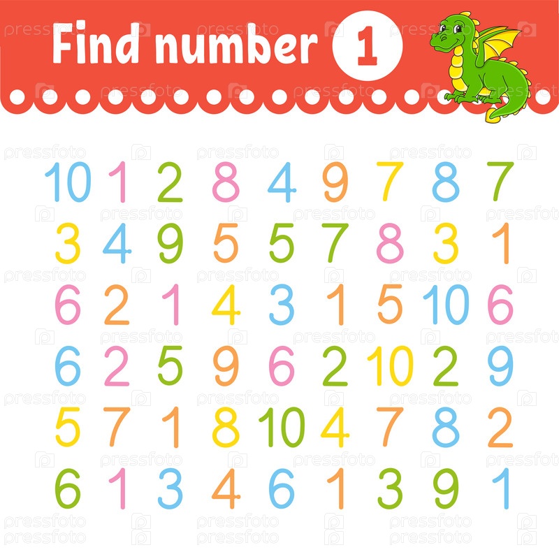 Найдите число. Образовательный развивающий рабочий лист. Страница с заданиями с картинками. Игра для детей. Забавный персонаж. Мультяшный стиль. Векторная иллюстрация