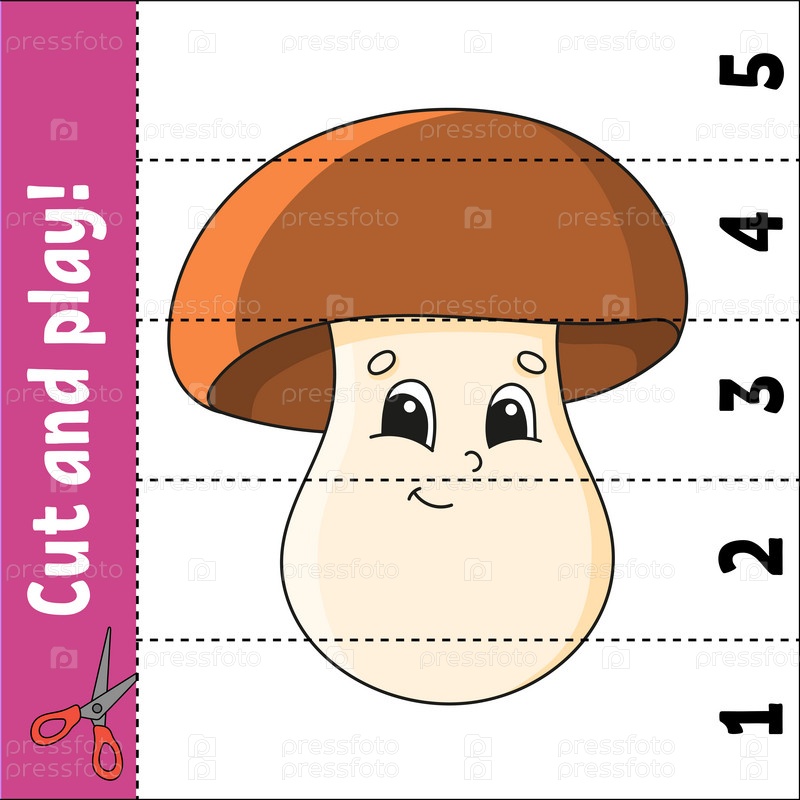Изучаем цифры от 1 до 5. Разрезаем и играем. Рабочий лист по образованию. Игра для детей. Страница с цветной активностью. Головоломка для детей. Загадка для дошкольников. Векторная иллюстрация. Мультяшный стиль