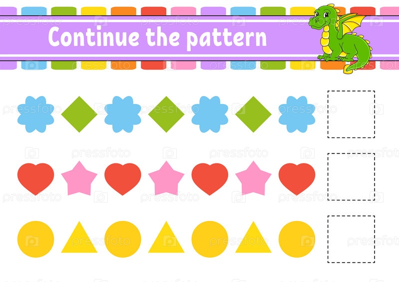 Продолжите узор. Развивающий рабочий лист для обучения. Игра для детей. Страница с заданиями. Головоломка для детей. Загадка для дошкольников. Милый мультяшный стиль. Векторная иллюстрация