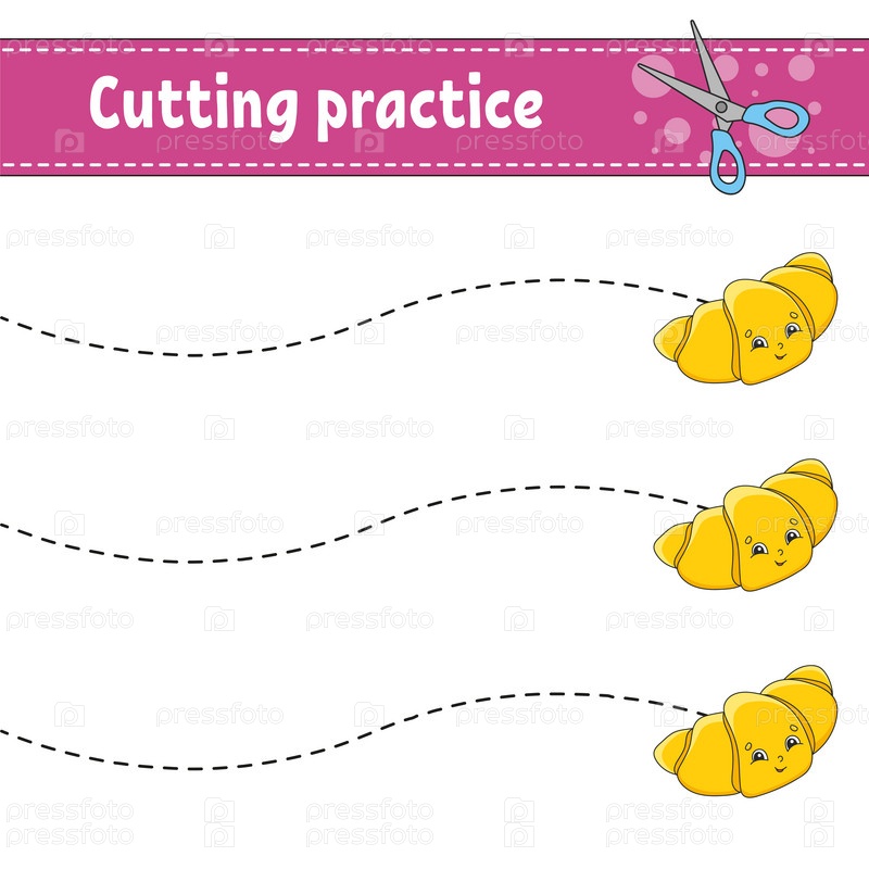 Практика вырезания для детей. Образовательный развивающий рабочий лист. Страница с заданиями. Цветная игра для детей. Изолированная векторная иллюстрация. Персонаж енот