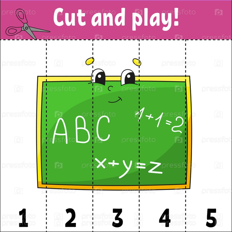 Изучаем цифры от 1 до 5. Разрезаем и играем. Рабочий лист по образованию. Игра для детей. Страница с цветной активностью. Головоломка для детей. Загадка для дошкольников. Мультяшный стиль. Векторная иллюстрация