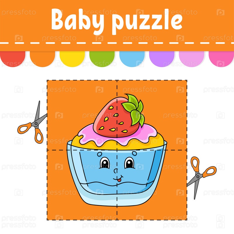 Детская головоломка. Легкий уровень. Флэш-карточки. Разрезай и играй. Рабочий лист с заданиями по цвету. Игра для детей. Персонаж мультфильма