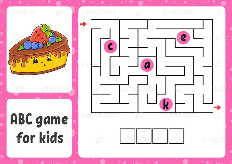 АБК-лабиринт для детей. прямоугольный лабиринт. рабочий лист. головоломка для детей. мультипликационный стиль. логическая загадка. цветовая векторная иллюстрация