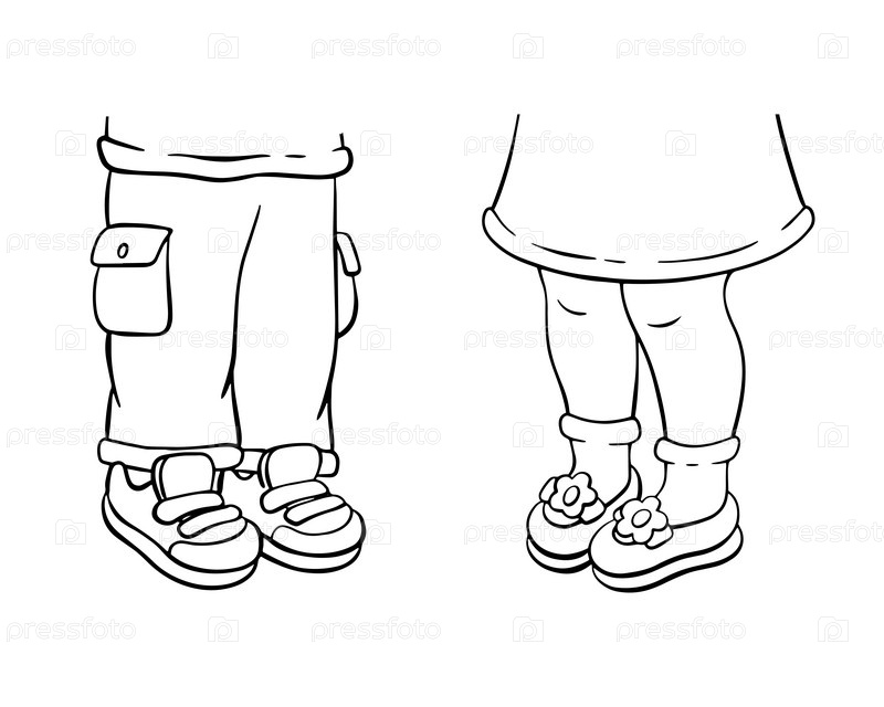 Ноги мальчика и девочки. Цифровой штамп. Персонаж в мультяшном стиле. Векторная иллюстрация на белом фоне