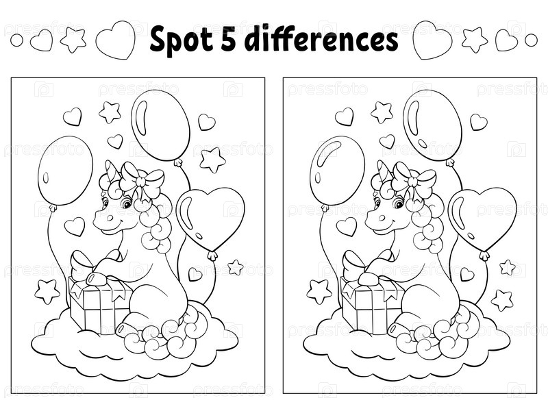 Найдите пять отличий. Раскраска для детей. Лист с заданиями для детей. Векторная иллюстрация на белом фоне