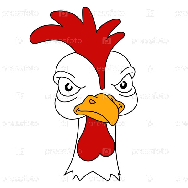 Злой петух. Недовольная домашняя птица. Талисман команды. Мультяшный стиль. Цветная векторная иллюстрация