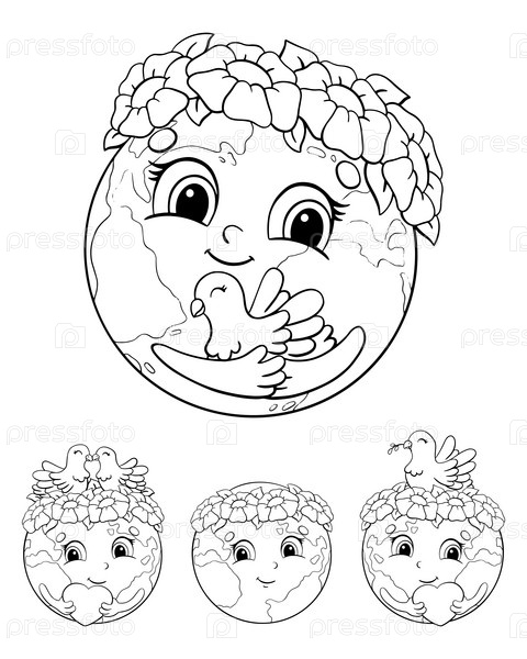Набор милых планет для Дня Земли. Раскраска для детей. Персонаж в мультяшном стиле. Векторная иллюстрация на белом фоне