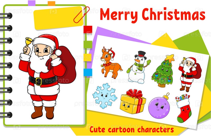 Набор наклеек с милыми мультяшными персонажами. Зимний клипарт. Рождественская тема. Красочный пакет. Векторная иллюстрация. Коллекция нашивок для детей. Для ежедневника, органайзера, дневника