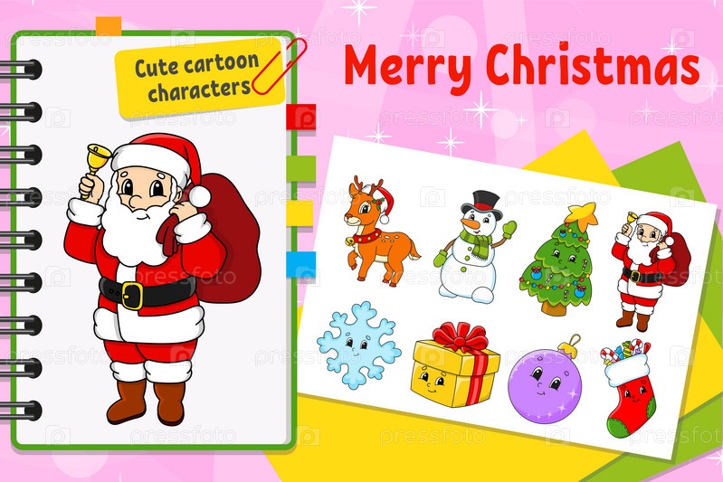 Набор наклеек с милыми мультяшными персонажами. Зимний клипарт. Рождественская тема. Красочный пакет. Векторная иллюстрация. Коллекция нашивок для детей. Для ежедневника, органайзера, дневника