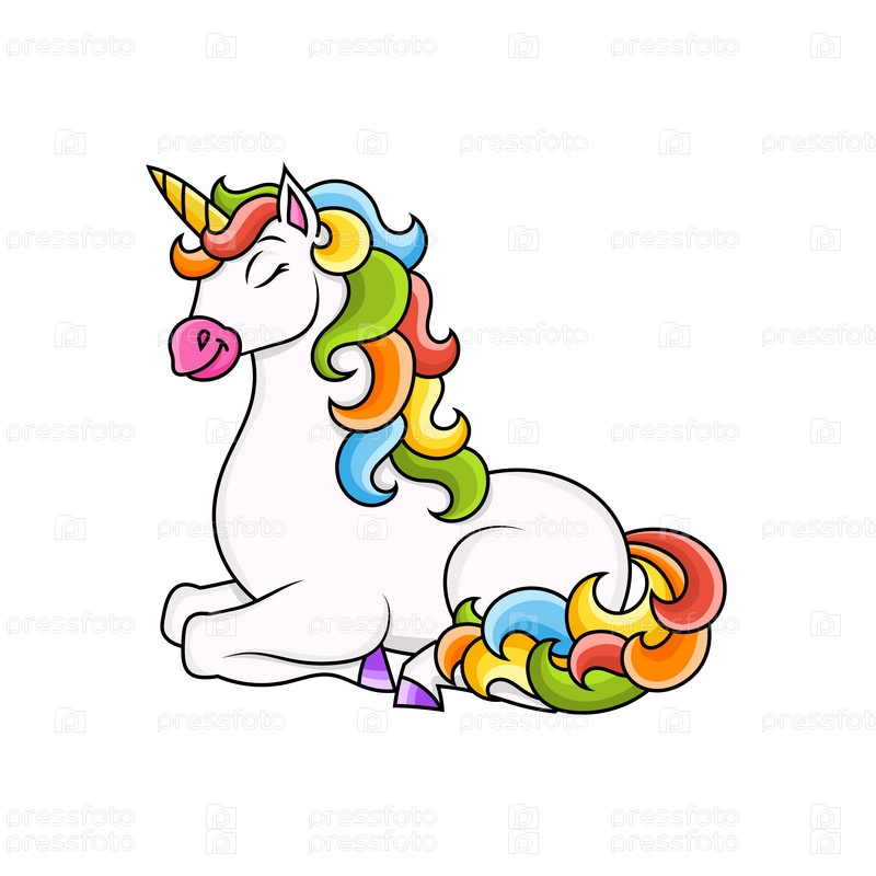 Милый единорог. Волшебная сказочная лошадь. Персонаж мультфильма. Красочные векторные иллюстрации. Изолированный на белом фоне. Элемент дизайна. Шаблон для вашего дизайна, книги, наклейки, открытки, плакаты, одежда