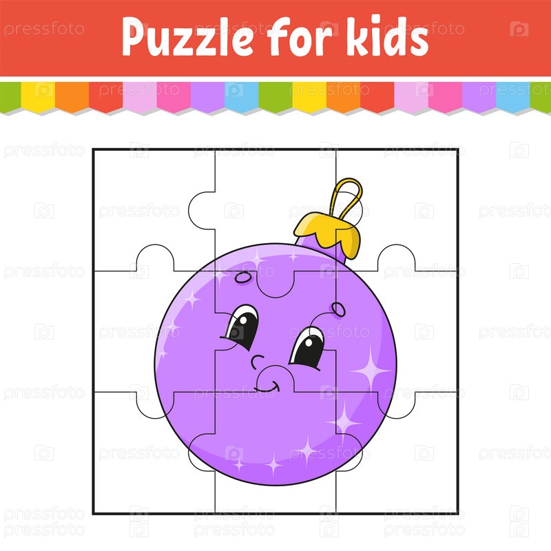 Игра-головоломка для детей. Кусочки пазла. Цветной рабочий лист. Рождественская тема. Страница с заданиями. Изолированная векторная иллюстрация. Мультяшный стиль