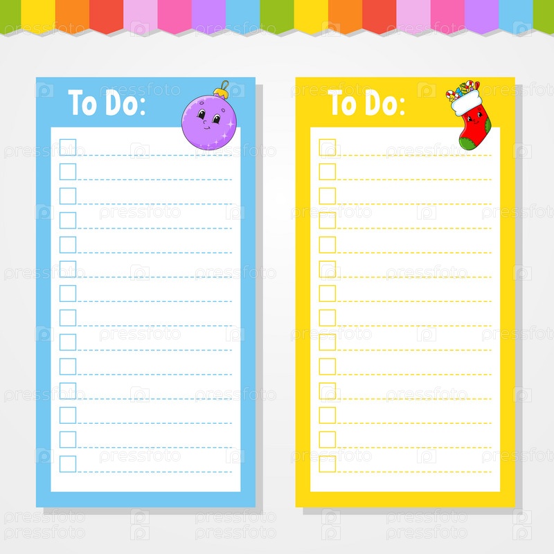 Список дел для детей. Пустой шаблон. Прямоугольная форма. Забавный персонаж. Мультяшный стиль. Для дневника, блокнота, закладки. Векторная иллюстрация