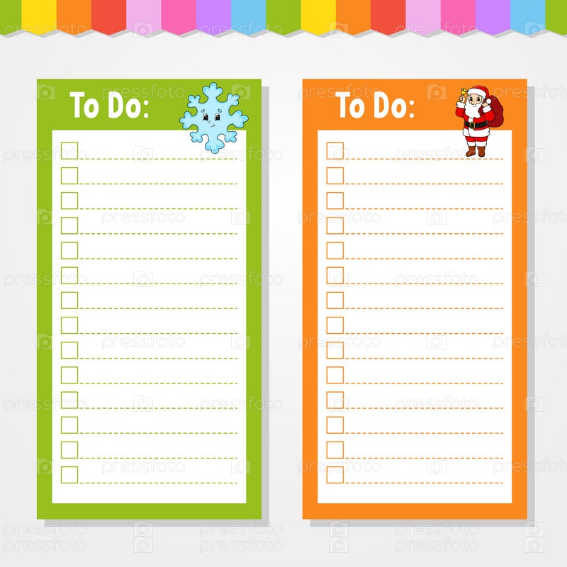 Список дел для детей. Пустой шаблон. Прямоугольная форма. Забавный персонаж. Мультяшный стиль. Для дневника, блокнота, закладки. Векторная иллюстрация