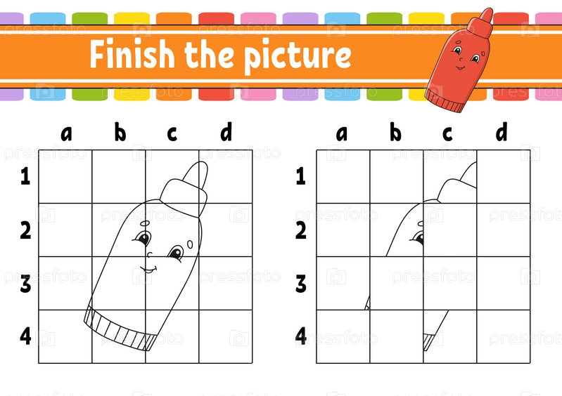 Дорисуй картинку. Страницы раскраски для детей. Развивающий рабочий лист. Игра для детей. Практика письма. Персонаж мультфильма. Векторная иллюстрация. Тема барбекю