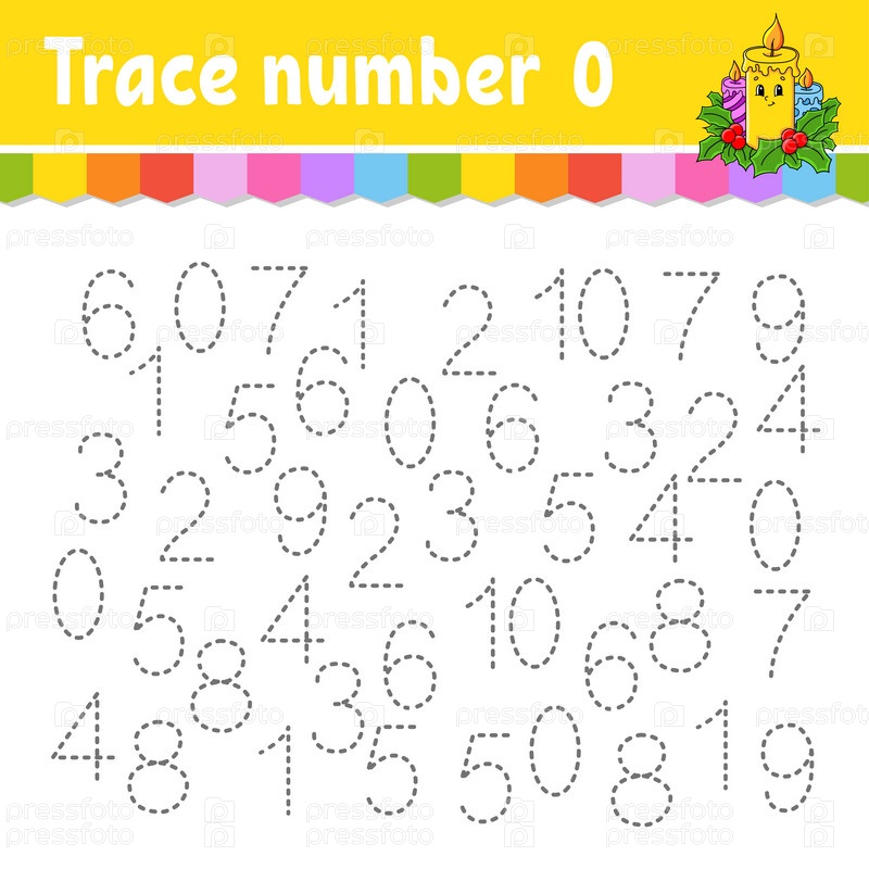 Номер трассировки. Практика письма. Изучение цифр для детей. Рабочий лист по развитию образования. Страница с заданиями. Рождественская тема. Изолированная векторная иллюстрация в милом мультяшном стиле