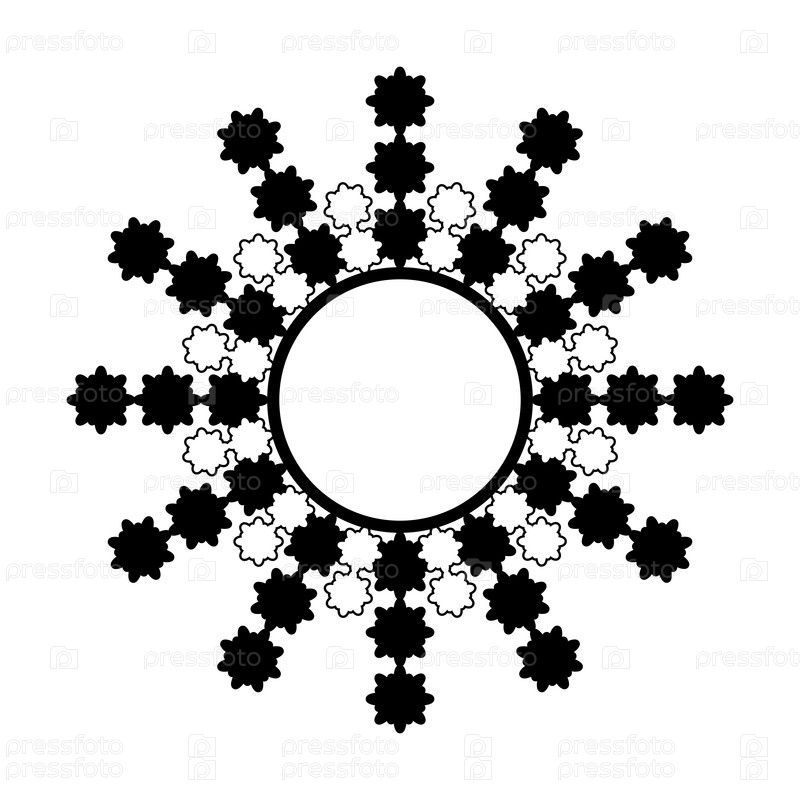 Абстрактное черно-белое солнце с лучами в виде цветов