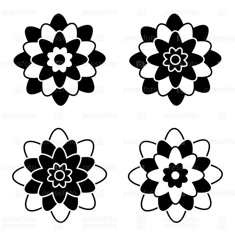 Набор черно-белых изолированных иконок цветов