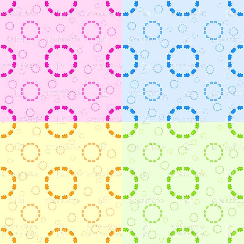 Набор бесшовных узоров из абстрактных кругов розового, синего, желтого, зеленого цветов