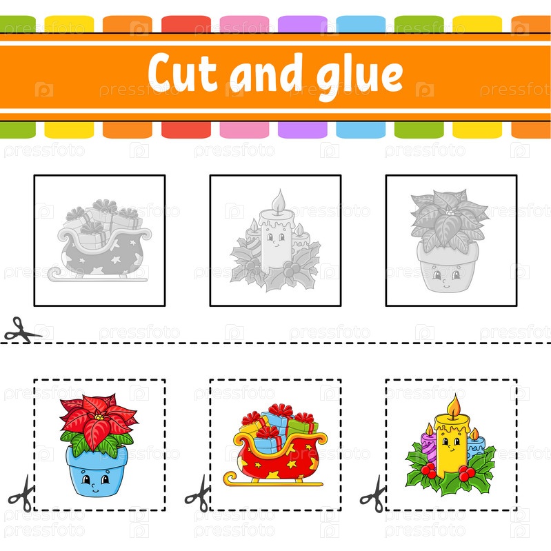 Вырезать и склей. Игра для детей. Образовательный развивающий рабочий лист. Цветная страница с заданиями. Персонаж мультфильма. Векторная иллюстрация