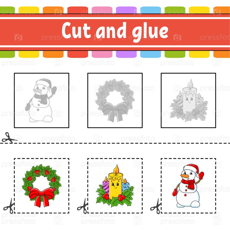 Вырезать и склей. Игра для детей. Образовательный развивающий рабочий лист. Цветная страница с заданиями. Персонаж мультфильма. Векторная иллюстрация