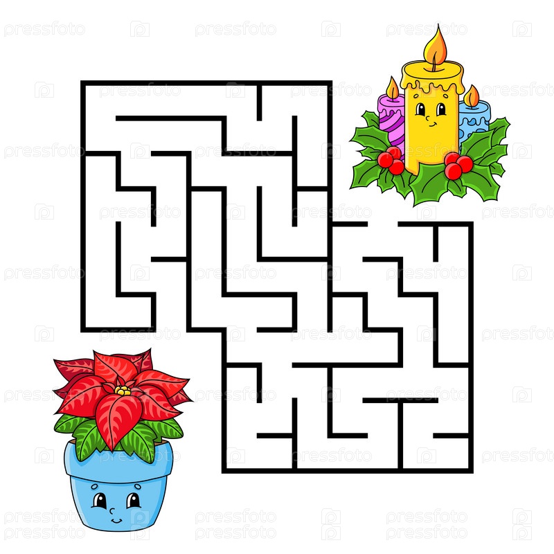 Квадратный лабиринт. Игра для детей. Головоломка для детей. Загадка лабиринта. Персонаж мультфильма. Изолирован на белом фоне. Векторная иллюстрация
