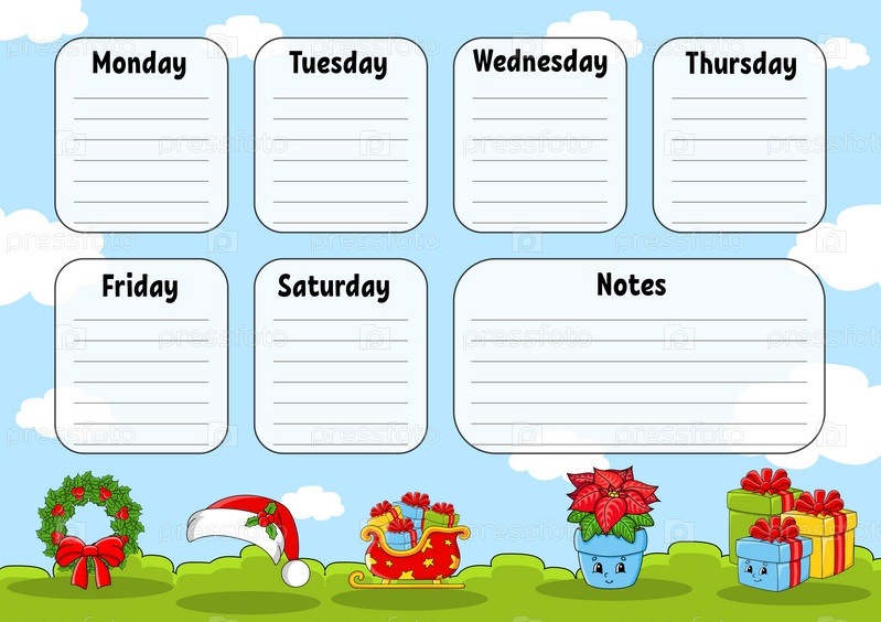 Расписание занятий в школе. Для образования детей. Изолировано на цветном фоне. С милым персонажем мультфильма. Векторная иллюстрация