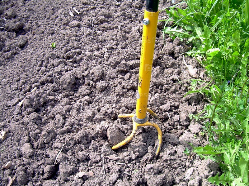 Перекопка почвы ручным культиватором. подготовка почвы к посадкам