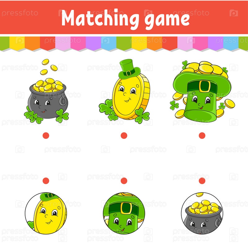 Игра на соответствие для детей. Образовательный развивающий рабочий лист. Нарисуй линию. Страница с заданиями. Персонаж мультфильма. Векторная иллюстрация. День Святого Патрика