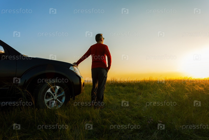 Мужчина наслаждается красотой природы на закате и думает о чем-то