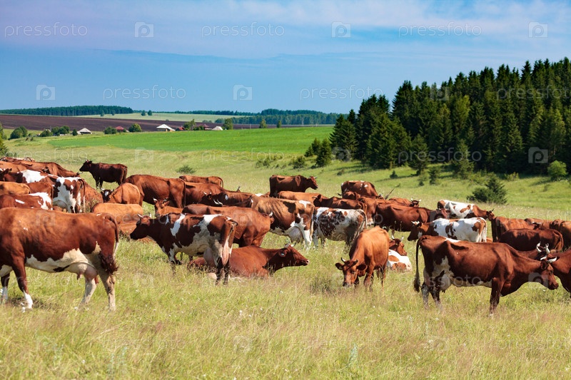 Стадо молочных коров на пастбище