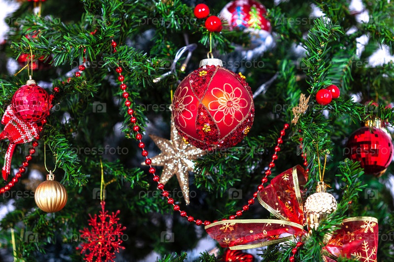 Крупным планом фотография красивой рождественской елки