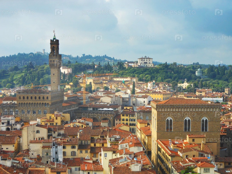 Вид на Флоренцию, Италия, снимок сделан с собора Санта-Мария-дель-Фьоре. Путешествия