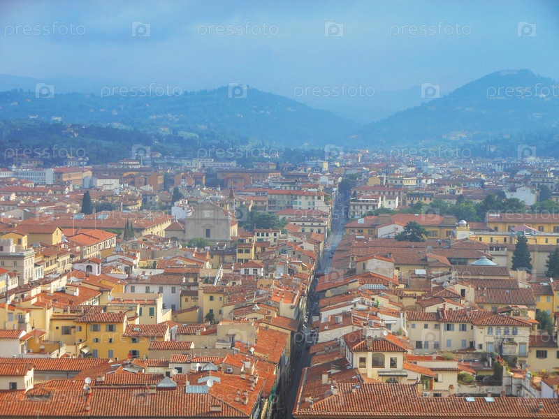 Вид на Флоренцию, Италия, снимок сделан с собора Санта-Мария-дель-Фьоре. Путешествия