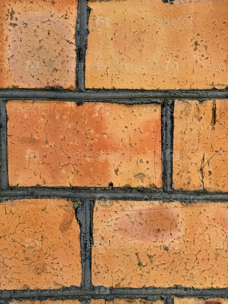 Красная кирпичная стена с черными стыками. Крупный план