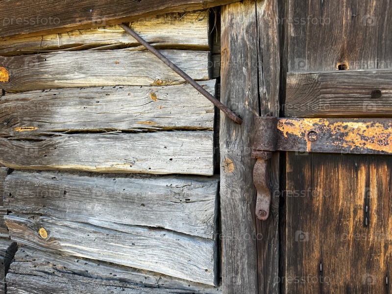 Стена старого деревянного сарая с дверным проемом