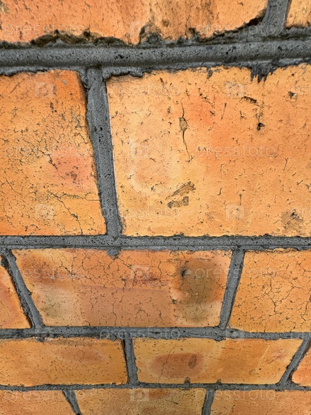 Красная кирпичная стена с черными стыками. Крупный план