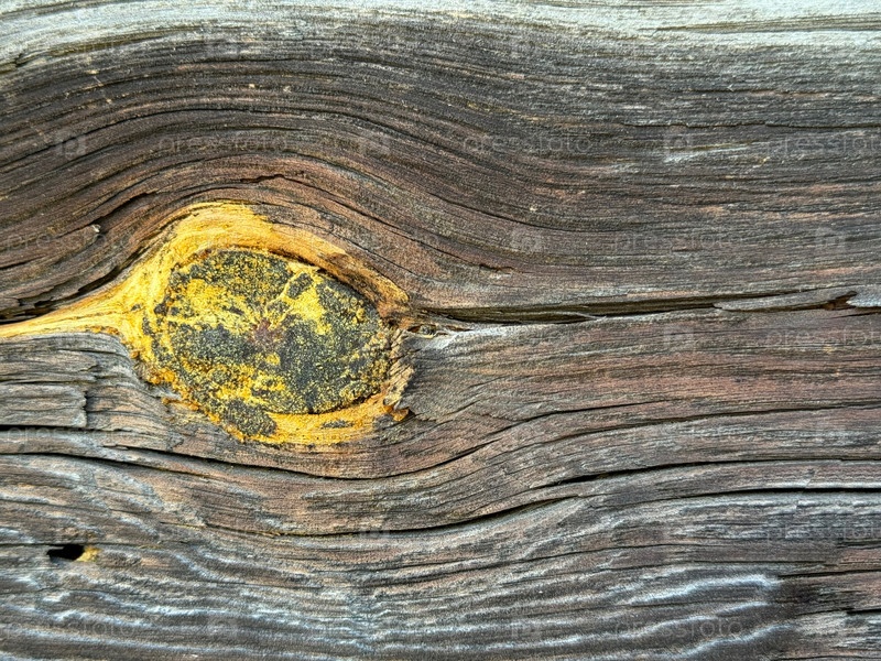 Старое изношенное сосновое бревно. Сучок с пожелтевшей от времени смолой