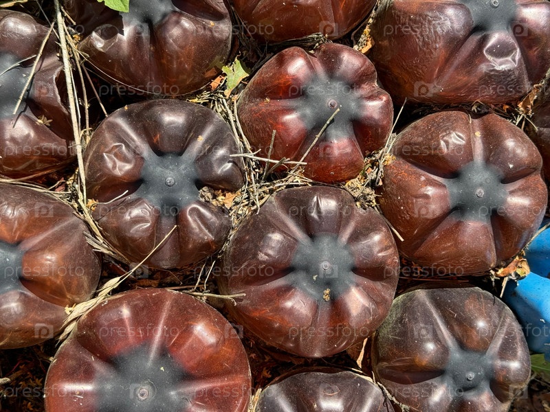 Днища пластиковых бутылок, зарытые вертикально в землю