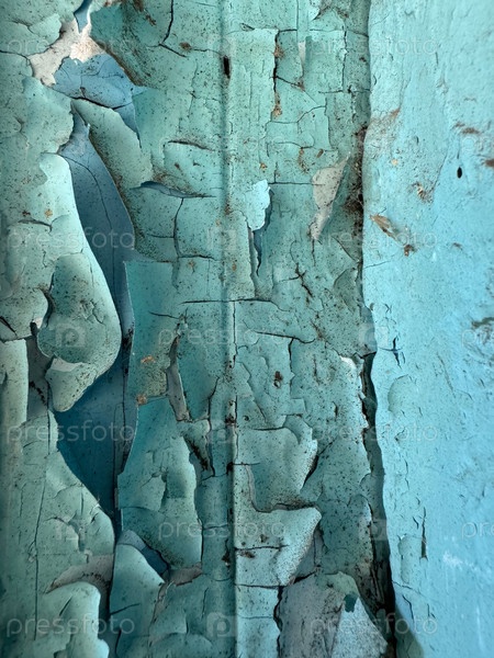 Старая облупившаяся синяя краска на деревянной поверхности. Крупный план