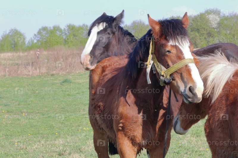 Лошади пасутся на лугу